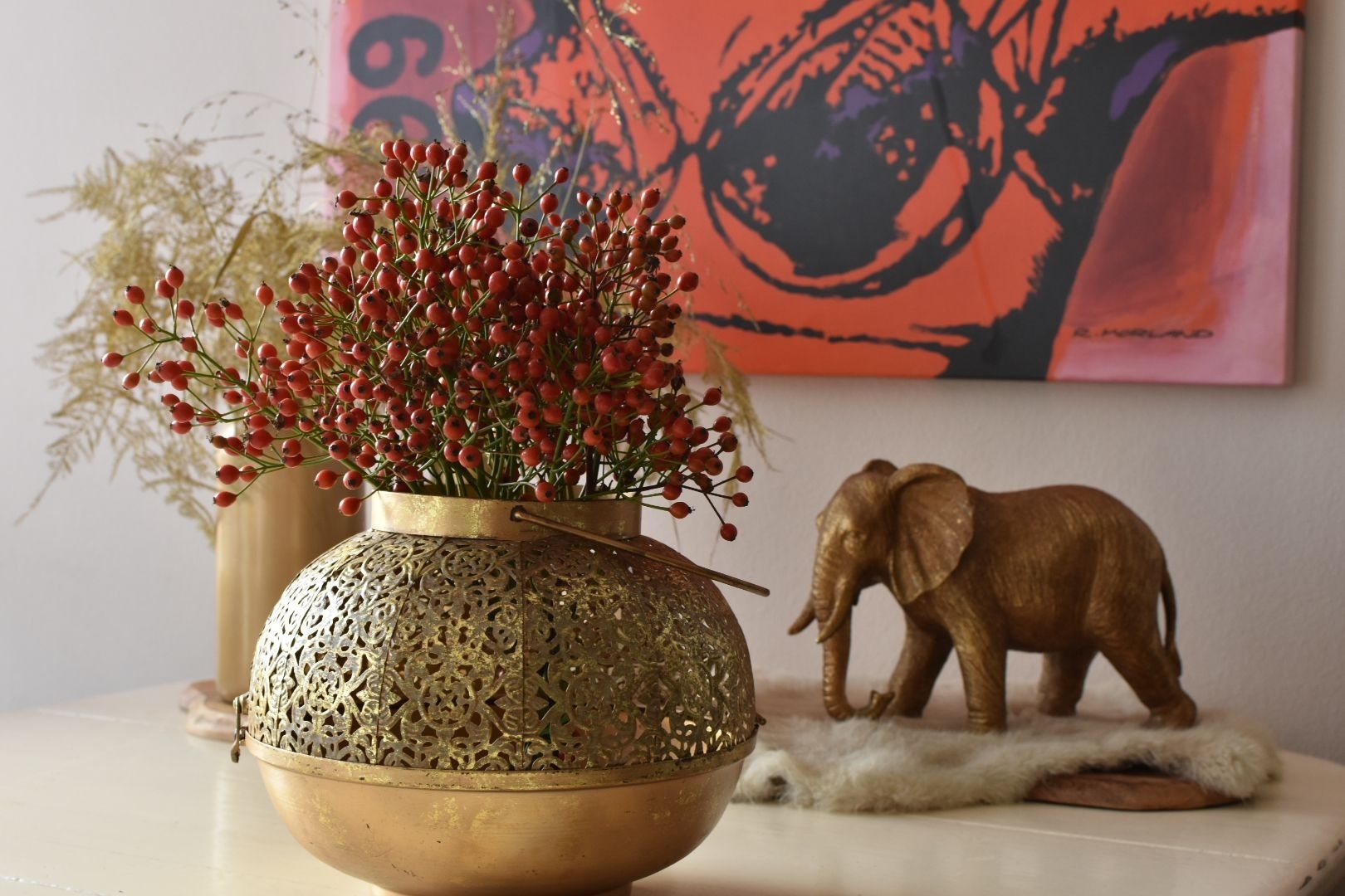 Wenn Sie einen schönen Hagebuttenzweig kaufen, stellen Sie sicher, dass Sie ihn nur in einer modernen Vase auf einem Sideboard oder Schrank platzieren müssen und er wird durch seine Schlichtheit perfekt zur Geltung kommen. Es ist der aktuelle Einrichtungstrend: Hagebuttenzweige in Vasen. Hagebutten haben an den Enden wunderschöne orangerote Beeren, es sind teilweise wirklich große Beeren mit einer wunderschönen Krone, echte Hingucker. Zum Beispiel reicht ein Hagebuttenzweig in einer Vase aus, um die Aufmerksamkeit auf sich zu ziehen, der Zweig hat oft ein Gewirr von Trieben und sorgt für einen schönen, farbenfrohen und dennoch minimalistischen nostalgischen Look: schön in jedem Einrichtungstyp.