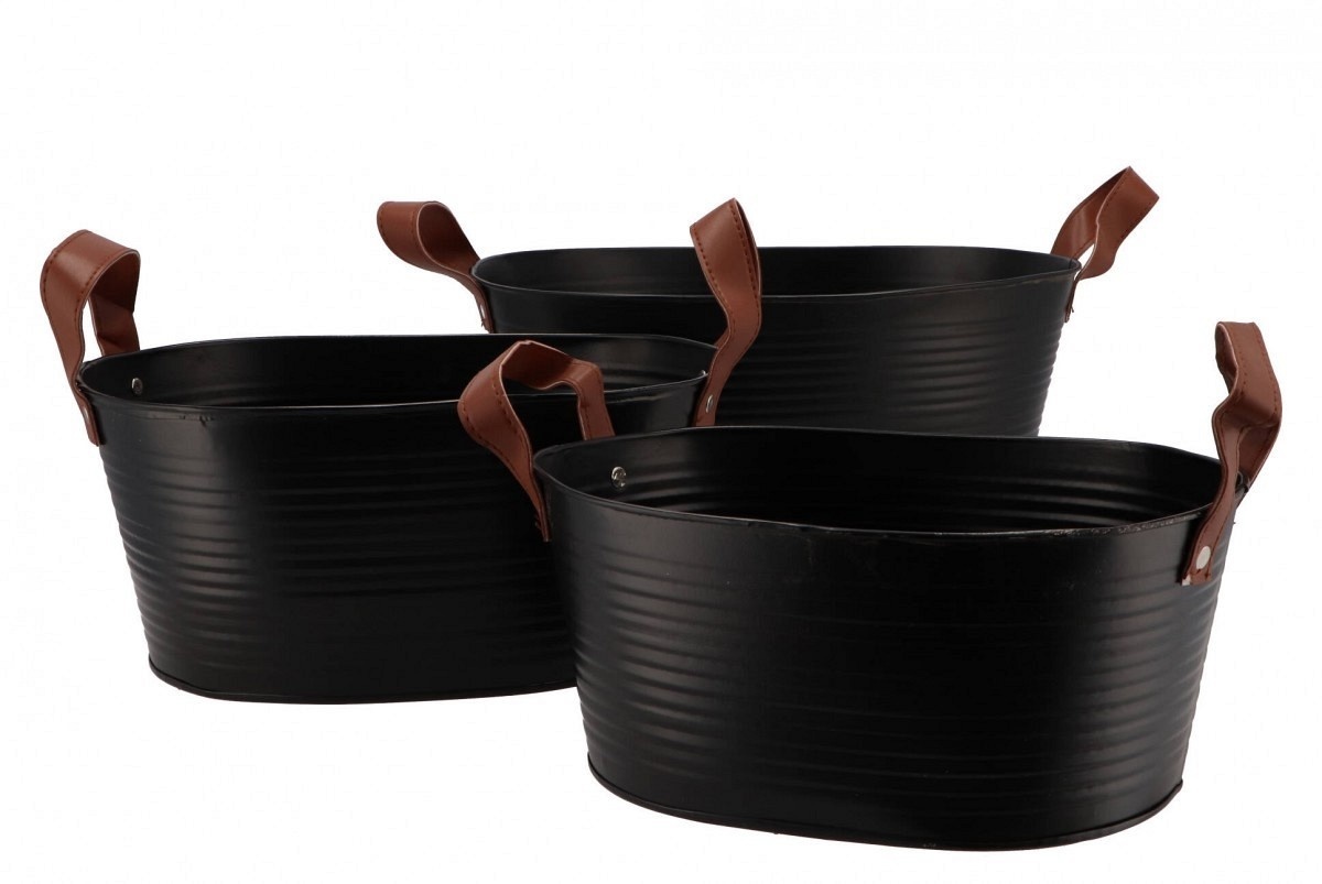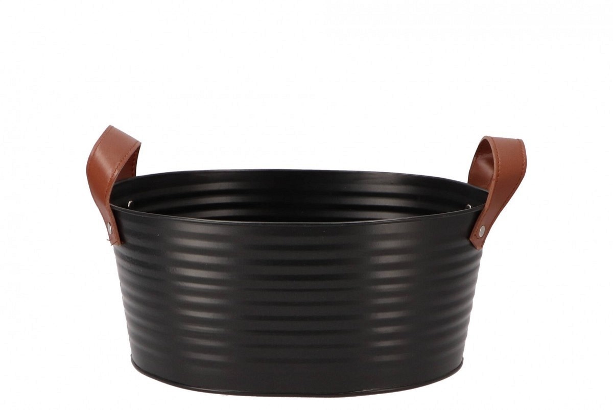 Zinkblumentopf oval matt schwarz 23x18x12cm