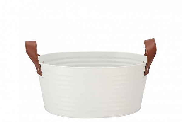 Zinkblumentopf oval mattweiß 29x22x16cm